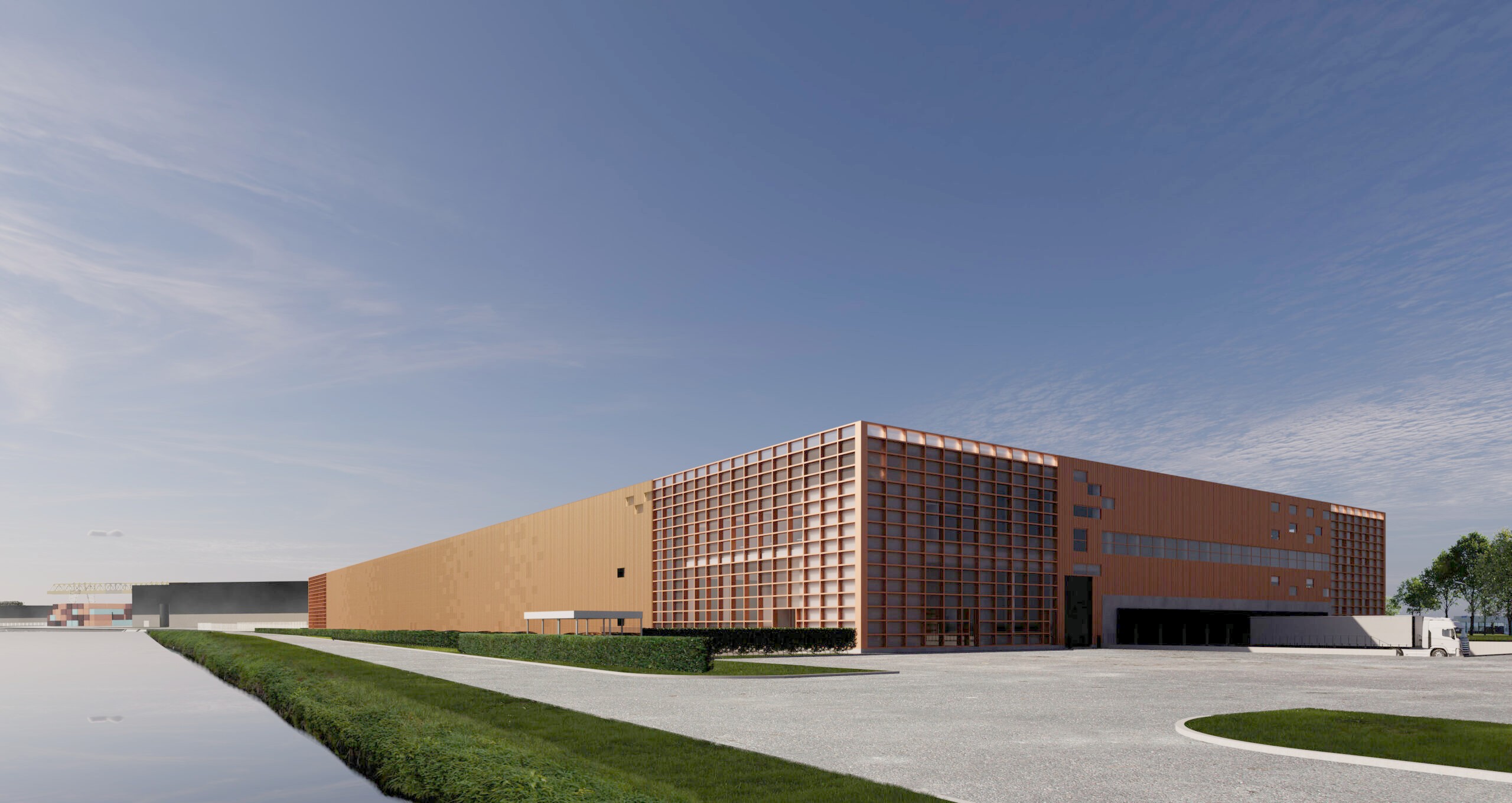 Willy Naessens Bâtiments Industriels participe à Puttershoek (Pays-Bas) à la réalisation de The Waterfront, un projet logistique d’envergure sur la campus industriel Heylen Warehouses.